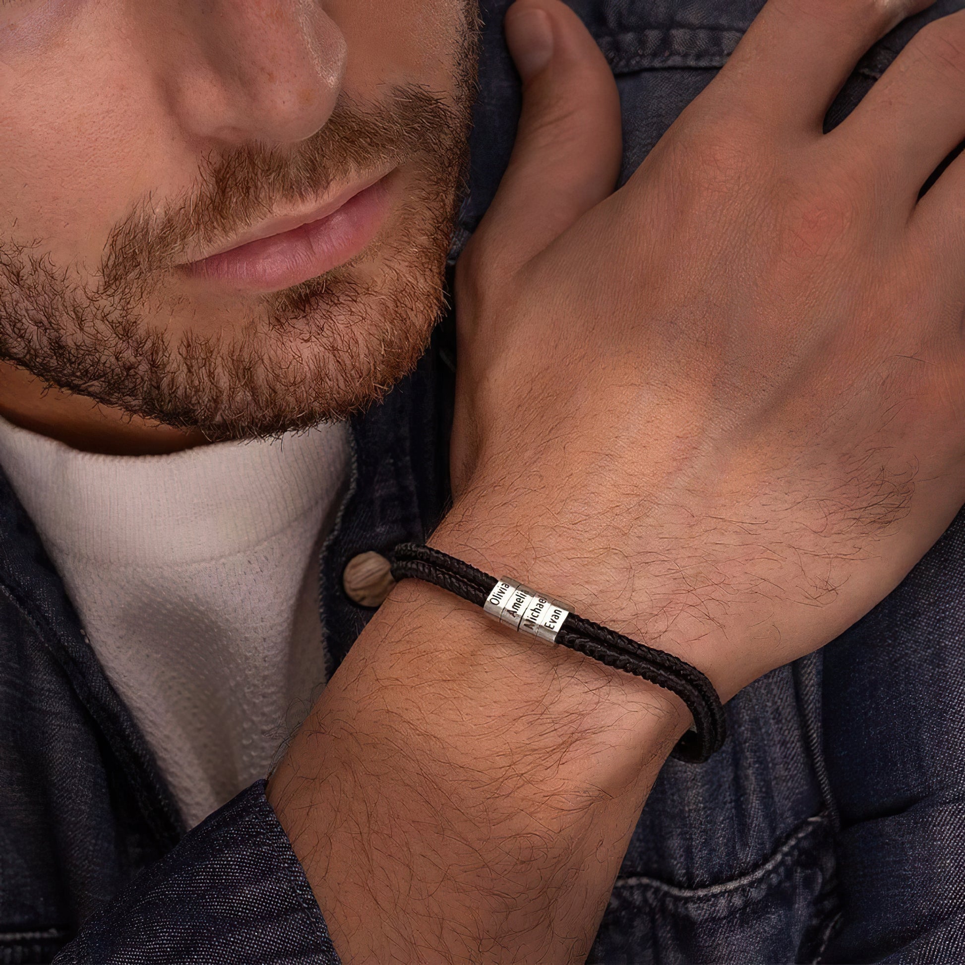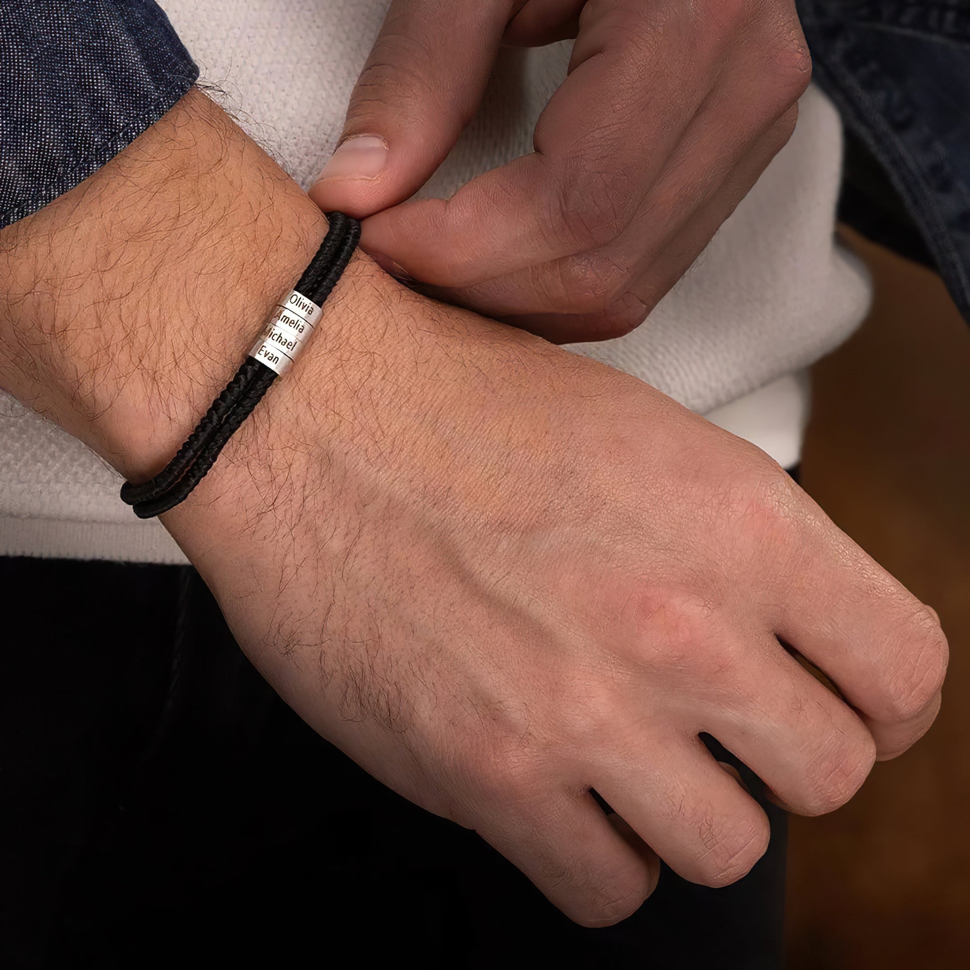 The personalized engraved bracelet is handcrafted from durable braided wax cord, blending simplicity with deep meaning. Each charm bead can be custom-engraved with the names of your loved ones, keeping precious memories and connections close at all times. With its minimalist and elegant design, this bracelet pairs effortlessly with any style and is perfect for everyday wear or as a thoughtful gift.