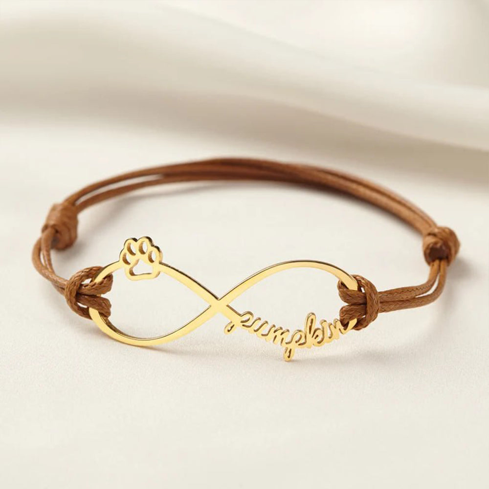 Infinity Leather Bracelet with Custom Pet Names – Dog & Cat Lovers Gift