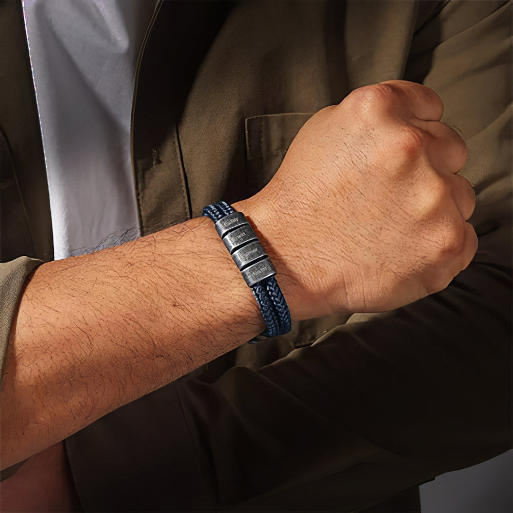 Add a touch of character to your look with our Personalized Vintage Men’s Bracelet. Designed with a rugged braided nylon cord and accented by stainless steel engraved beads, this bracelet lets you carry the names of your loved ones wherever you go. Perfect as a heartfelt gift for fathers, sons, grandfathers, or partners, it’s a timeless accessory that blends sentiment with style.