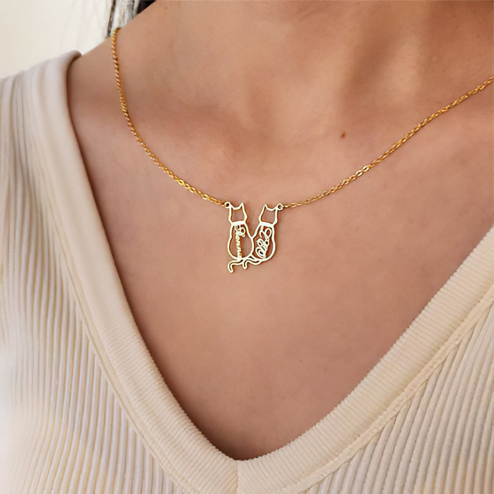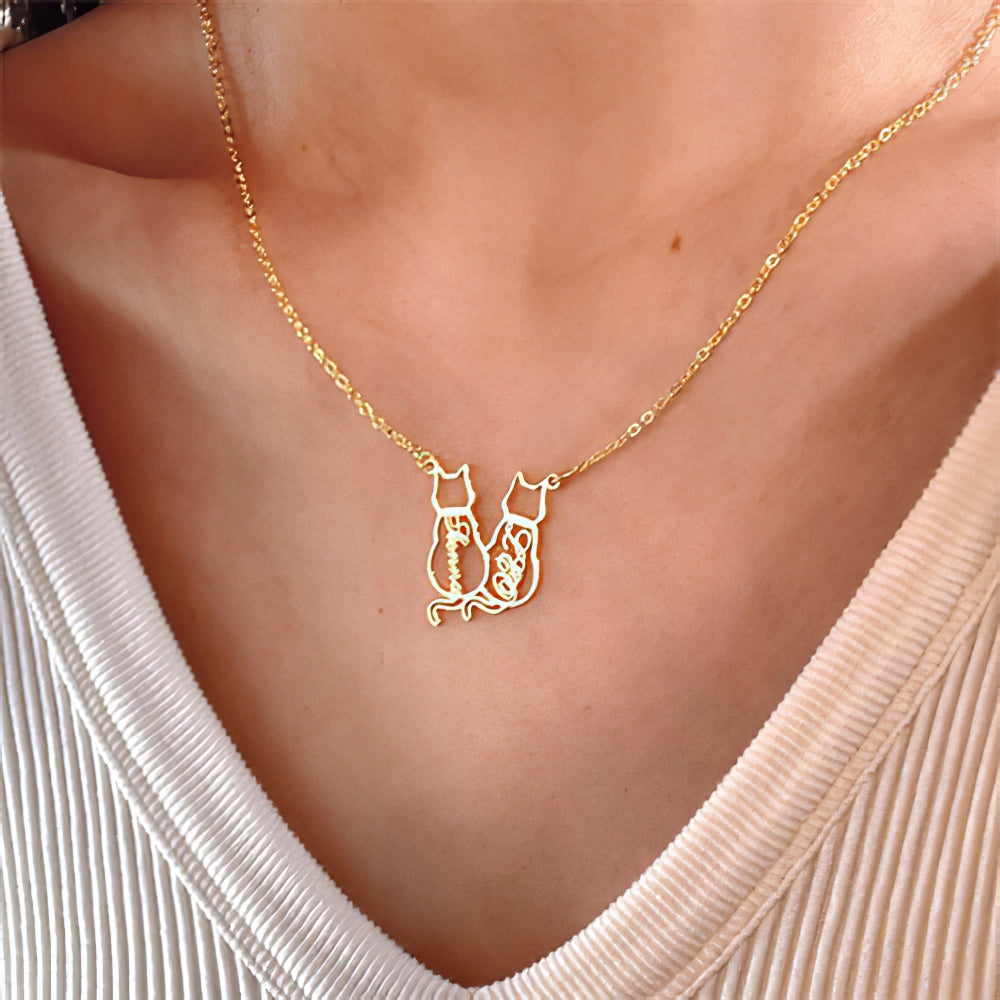 Our Custom Cat Name Necklace is the purr-fect way to celebrate your love for your feline friend. Crafted with a delicate cat silhouette design, each piece is personalized with your pet’s name, allowing you to keep their memory and love close to your heart. Whether as a stylish everyday accessory or a sentimental keepsake, it’s an ideal gift for cat moms, friends, or anyone who cherishes their furry companion.