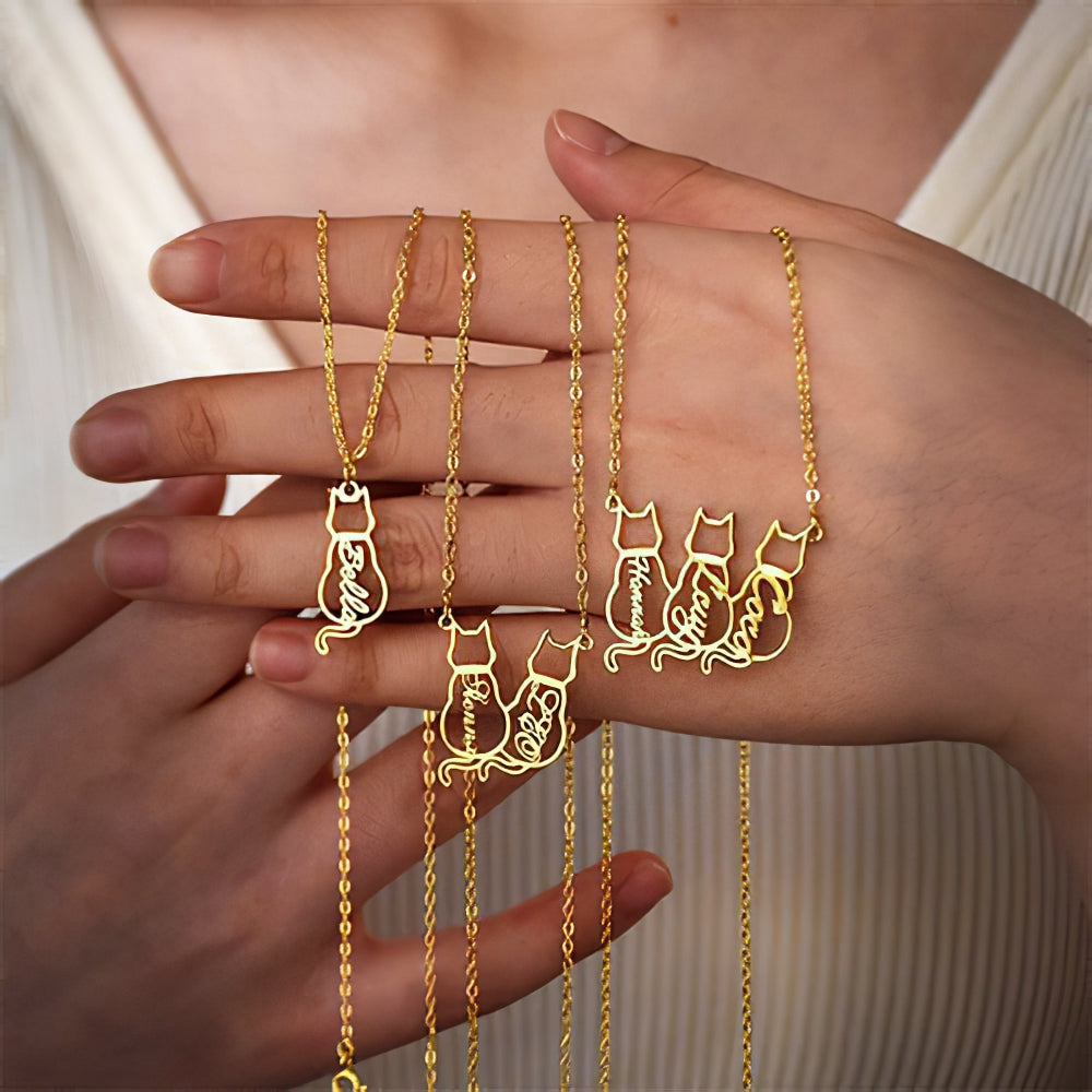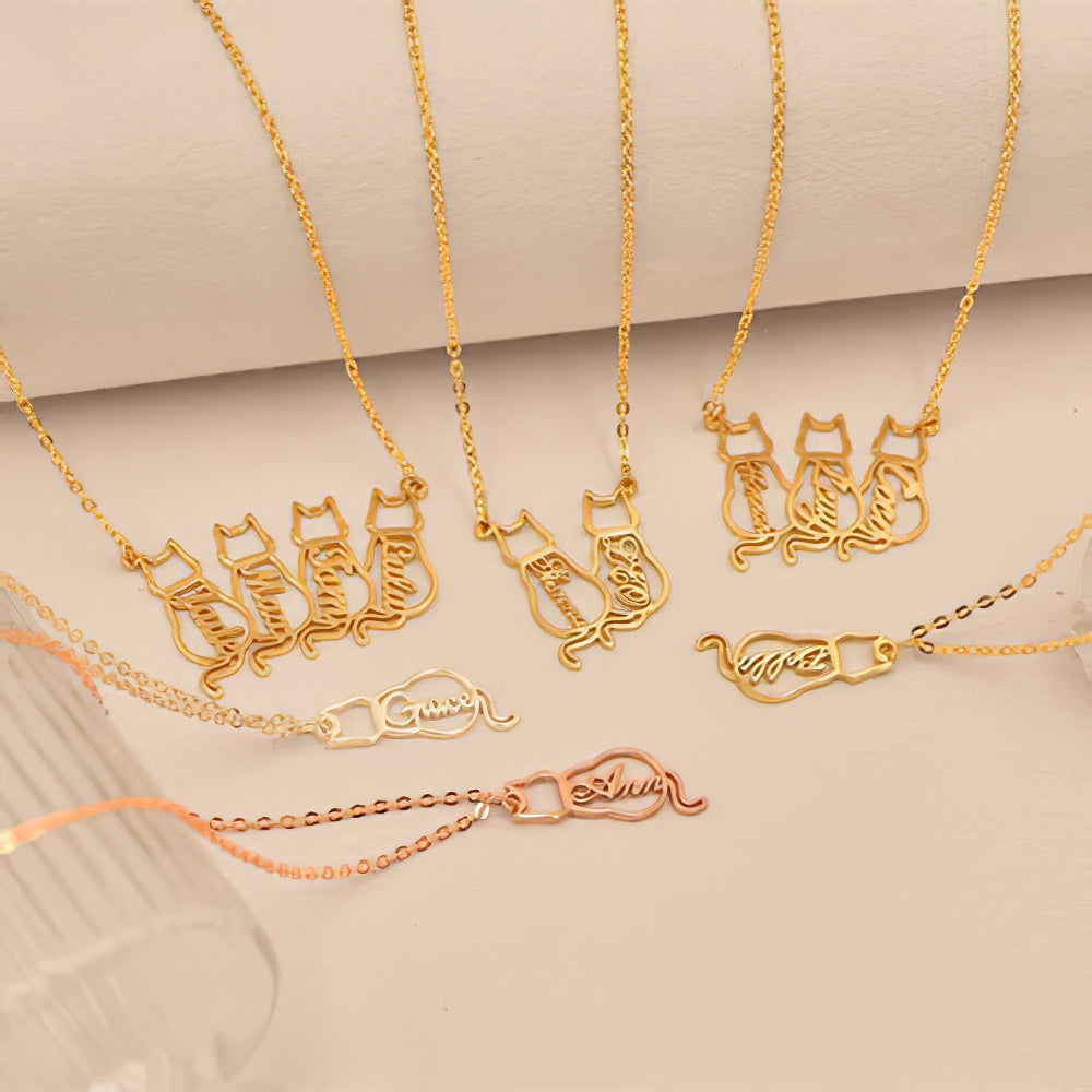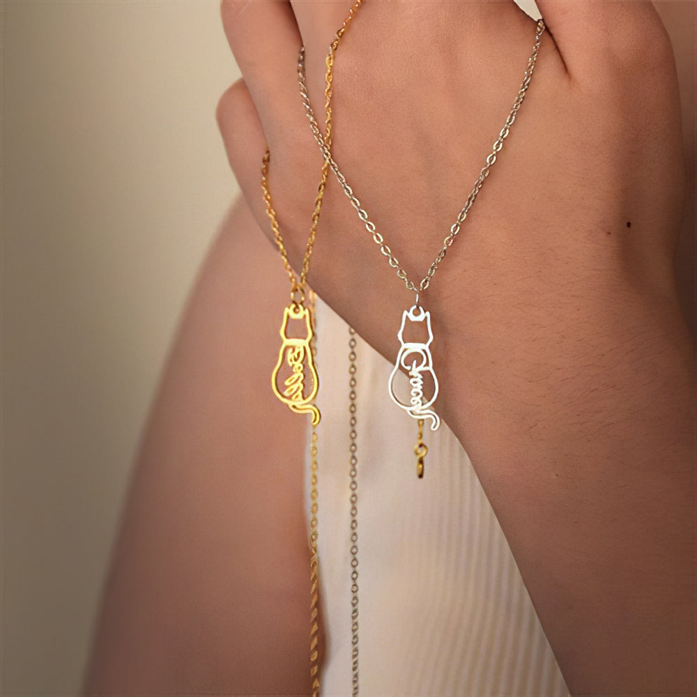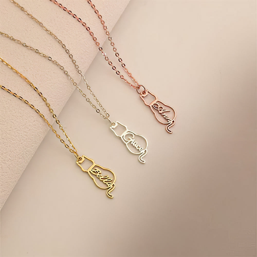 Personalized Cat Name Necklace – Custom Cat Silhouette Pendant