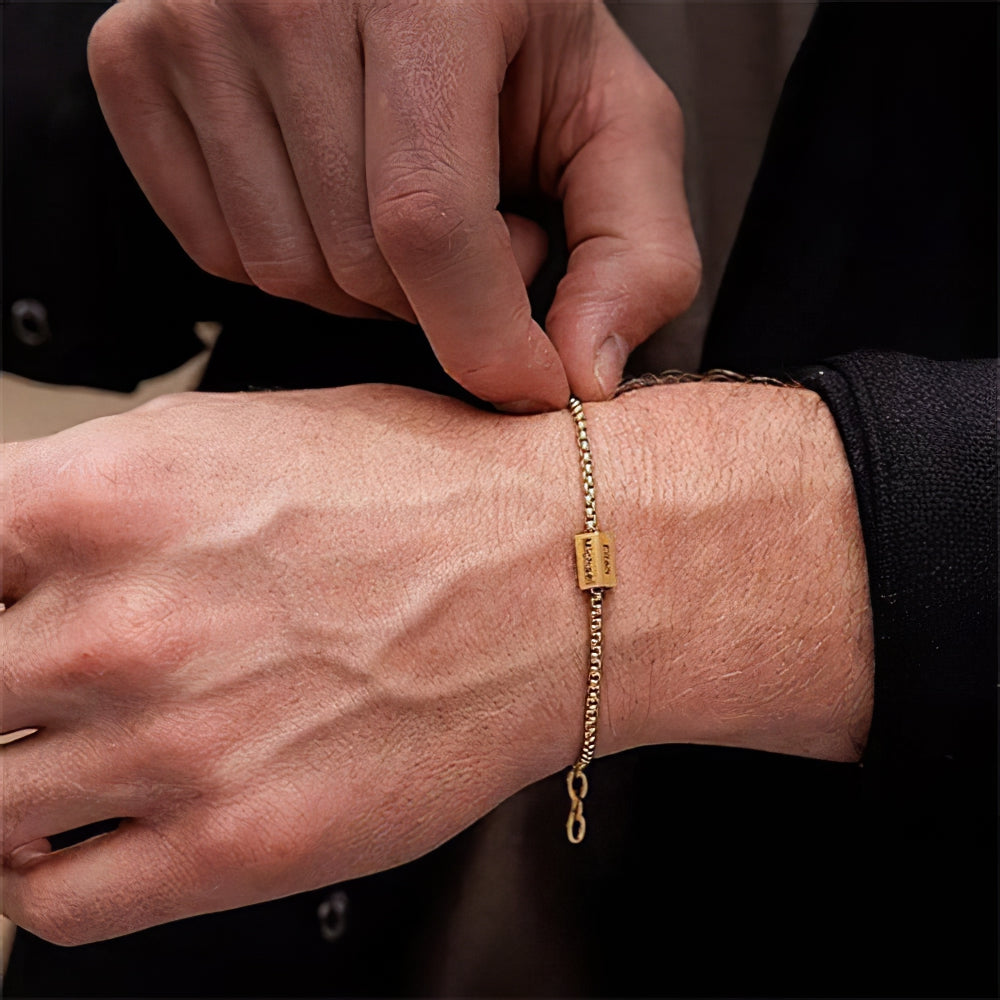 Celebrate the unbreakable bond of family with our Personalized Dad Bar Bracelet. Featuring a sleek, minimal bar design, each piece can be custom-engraved with the names of your children or loved ones, making it a truly meaningful keepsake. Designed with masculine elegance, this bracelet adds sophistication to any outfit while keeping your most cherished memories close.